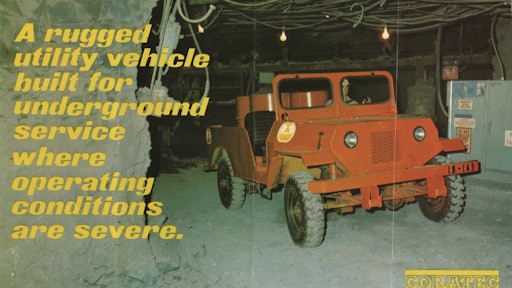 When Copper Range closed its Champion Mine in Painesdale, MI, in 1967, the mine's extensive machine shop was kept open to support equipment working elsewhere. By the early 1970s, Copper Range's Coratec Div. was marketing its own line of underground mining equipment, including the Ensign 100 utility vehicle.